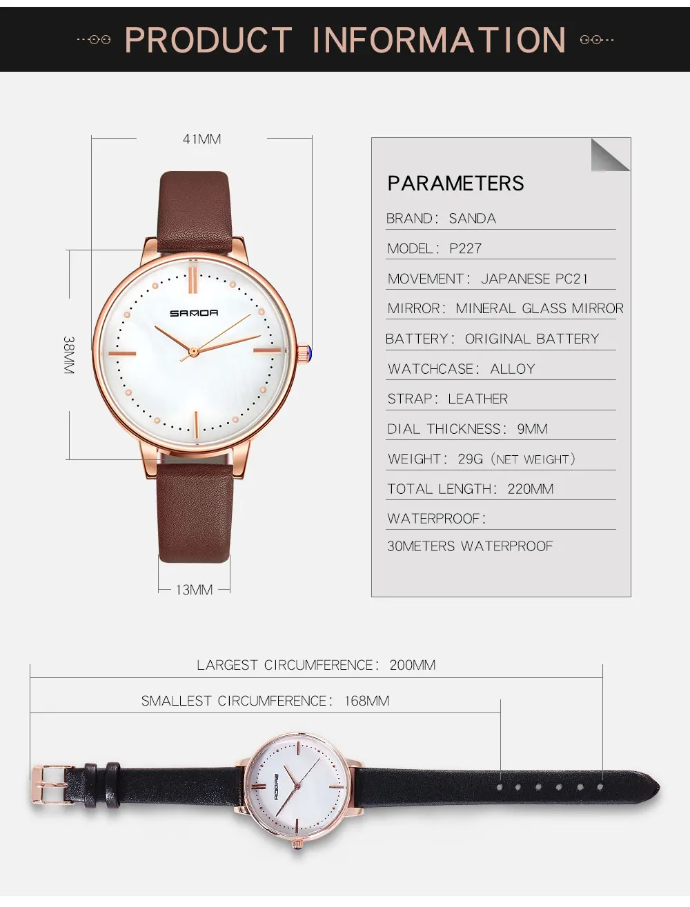Best Seller SANDAPreppy Style Korean-Style Design Fashion Luxury Quartz Women's Watch Waterproof Durable Girl W